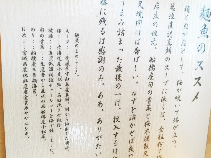で、そこの一番濃いやつ、『特選濃厚、真鯛らーめん』にしました。ここにも『鯛』