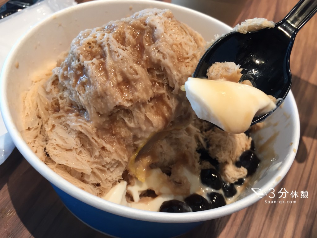 中に入っていたタピオカと杏仁豆腐もこのかき氷のしっとりとした食感によくあって、もちもちとしておいしかったですよ。