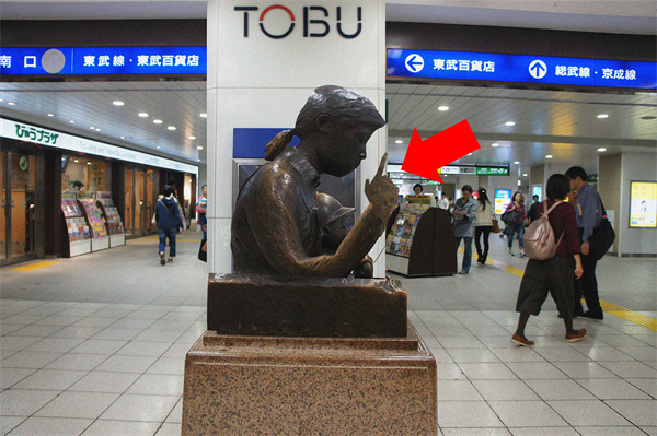 JR船橋駅のさざんかさっちゃんの像。香川選手の美しい七三分けは香川真司オフィシャルWebサイトで