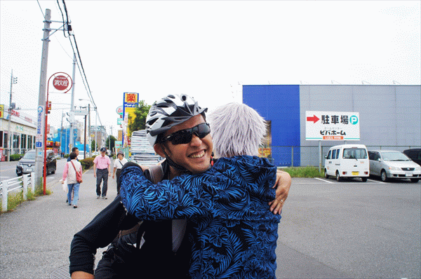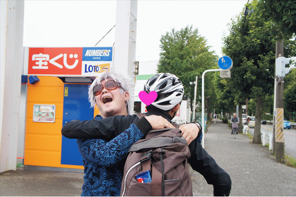 あつい抱擁の後、ぼくたちは芝山団地商店街で乾杯しました。